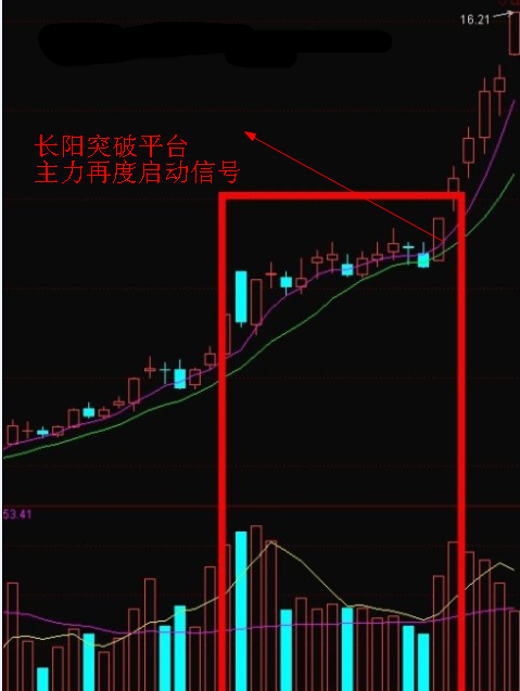 4、股价启动时堆量,盘整时缩量,再度突破时需放量。
