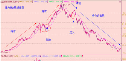30日均线对操盘手而言有着非同一般的意义,我们称之为生命线,如果说趋势线是行情牛熊分界线,那么生命线绝对就是波段强弱分界线,如何规避波段风险把握波段收益我们都能从生命线走势中得到启示。当然和其他均线一样,生命线也可用于分时、周线、月线等。