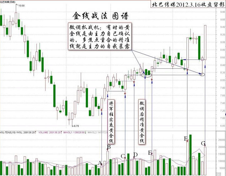 请看图6-6北巴传媒2012.3.16日留影——微调黄金线详解:
